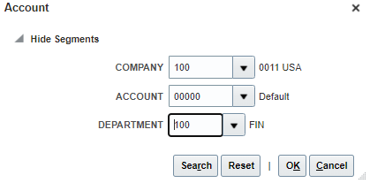 2.2.3 Select the Segments Values from the Dropdown and click on the ok button.